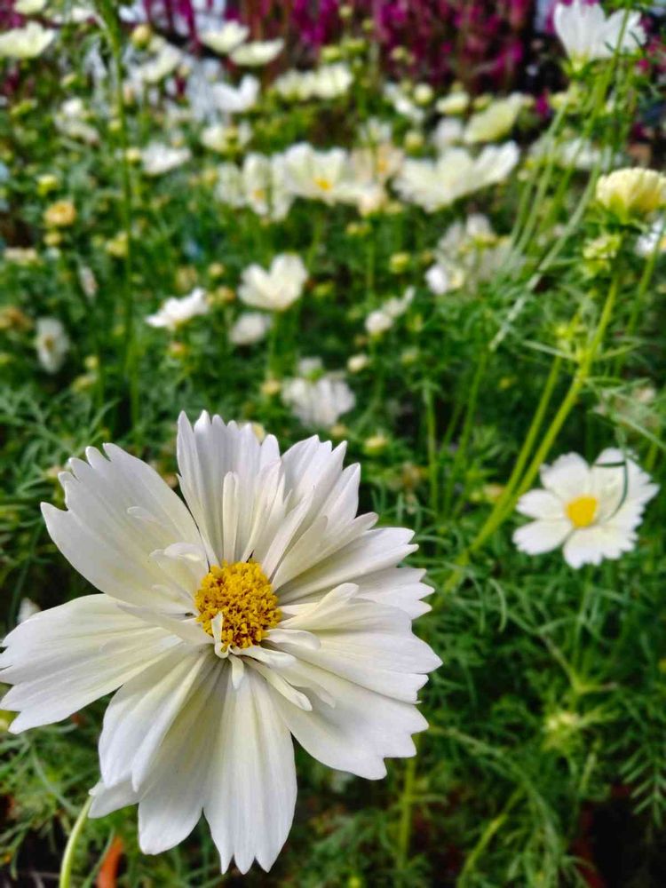 ホワイトに見えますが、よ〜く見ると花びらの内側が淡いクリーム色をしていました。