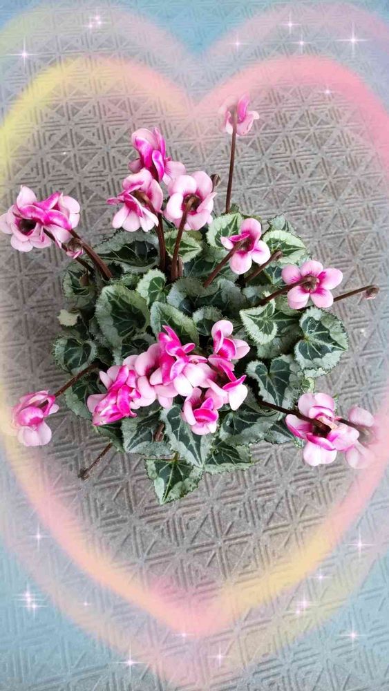 シクラメンの八重咲きなんて珍しいですね😍葉っぱも白が入っていて可愛い💕