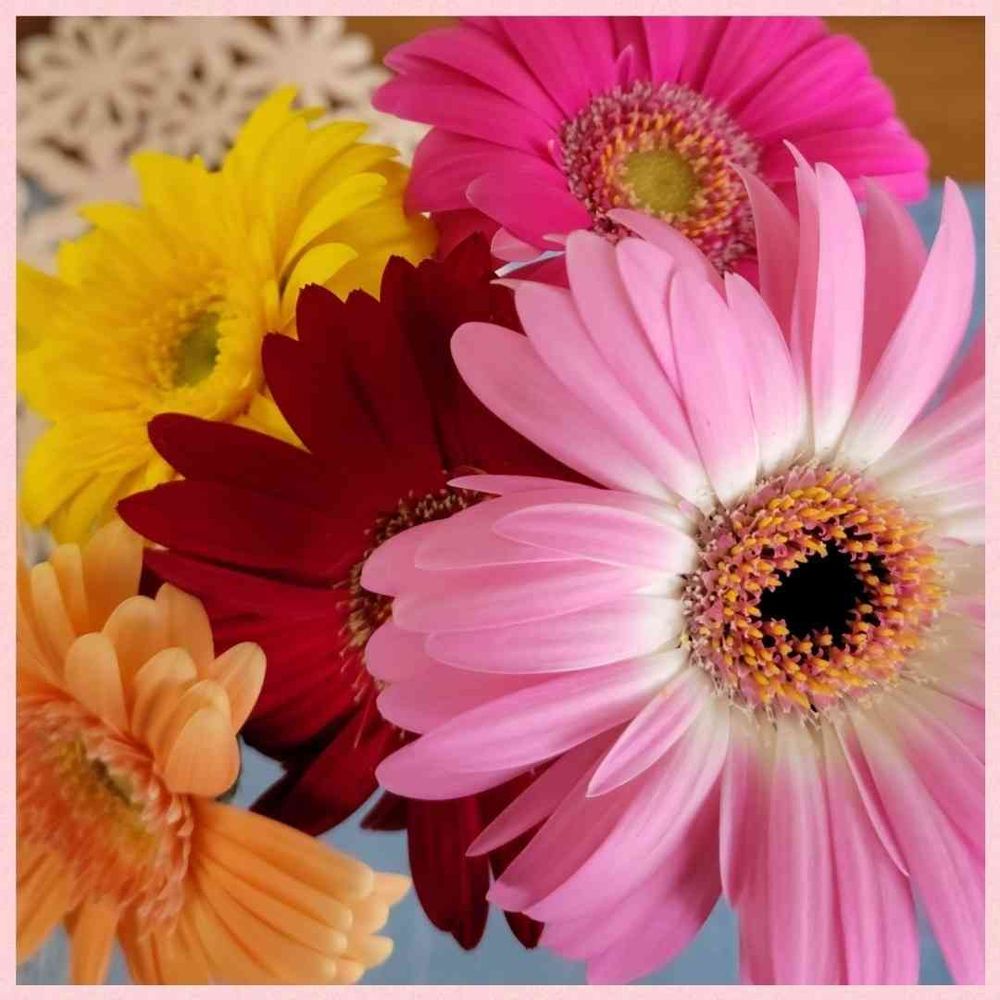 ガーベラは大輪で派手っぽいけど、パステルカラーが綺麗でテーブルには選びがちです🤭