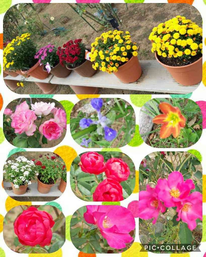 さん、こんにちは👋😃見て下さり有り難う( ´∀`)御座いました。秋薔薇🌹が、余り綺麗に、今年は、雨☔も、降らないので、綺麗に、密に、咲いてませんが、マムだけは、元気良く、咲いてます。黄色いマムは、去年、買って、挿し木して主人が、増やしております🙆✌😃💓😁有り難う( ´∀`)御座いました。また見てくださいね。👋😃✨。