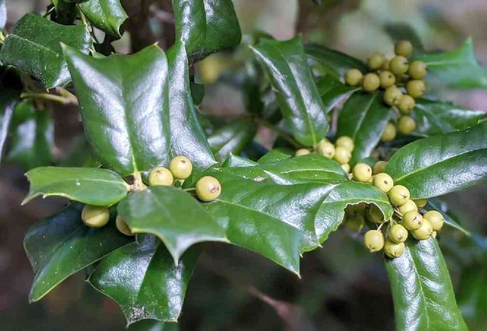 本当ね。Xmasのホーリーそのものなのに赤い実が付かないなんて残念ね〜。どうしてかしらね〜?