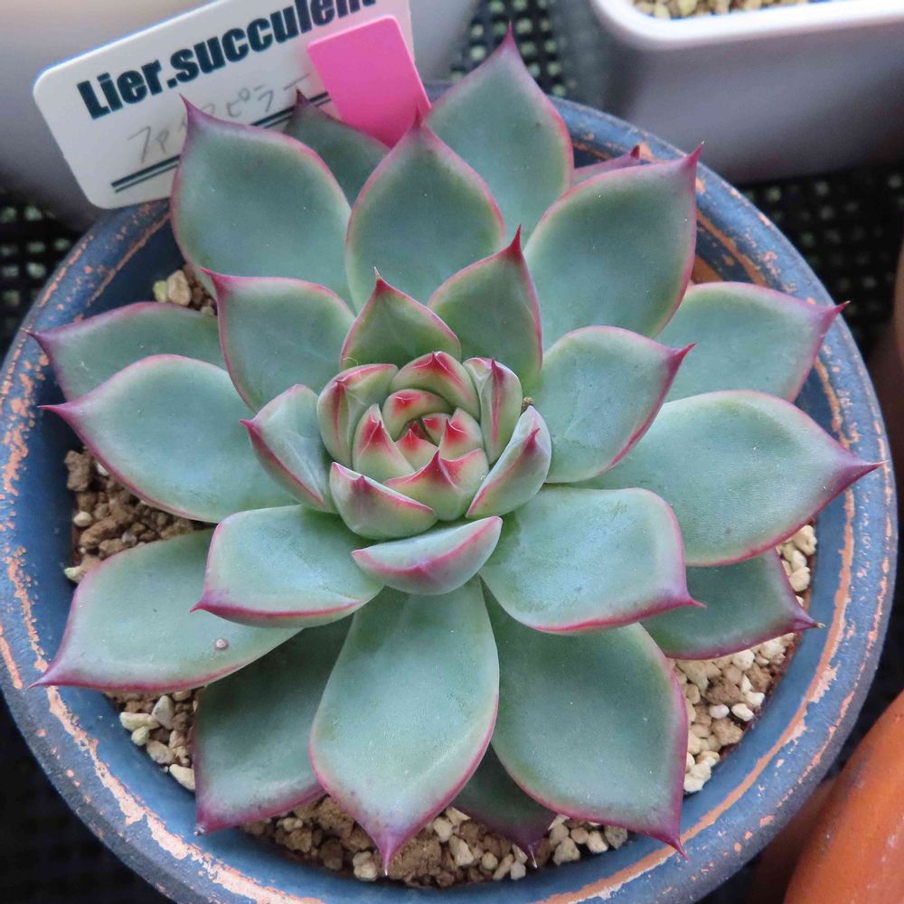 成長点まわりの色付きの感じはチワワエンシスによく似ている。よーく見るとうっすらとウォーターマークのような模様もある。今後の変化が期待できるエケベリアの1つ。