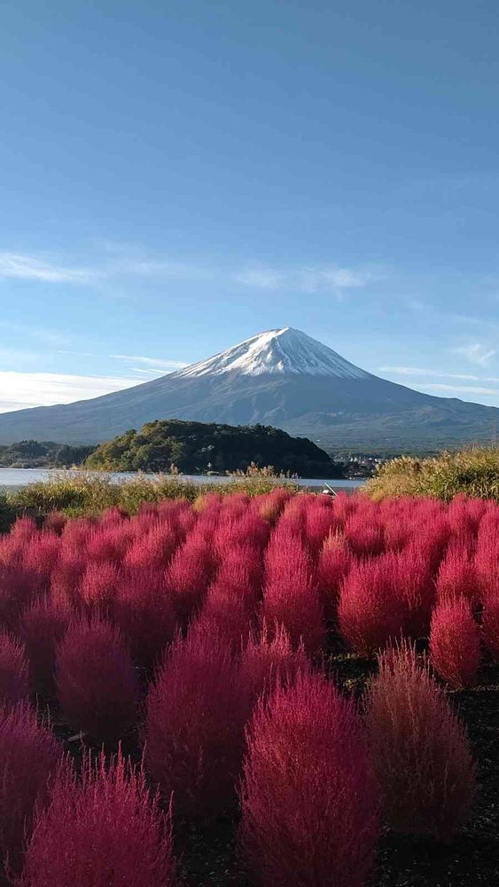 河口湖、大石公園の、コキアと、富士山、