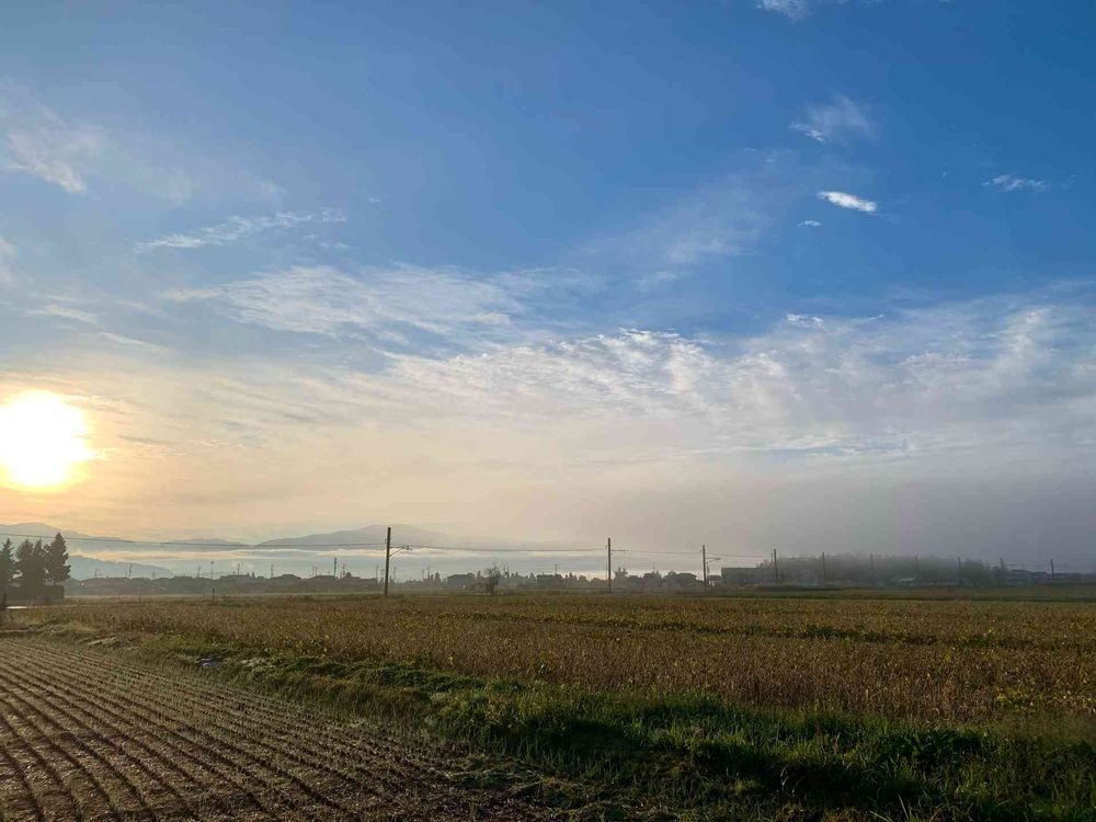 田んぼと霧です