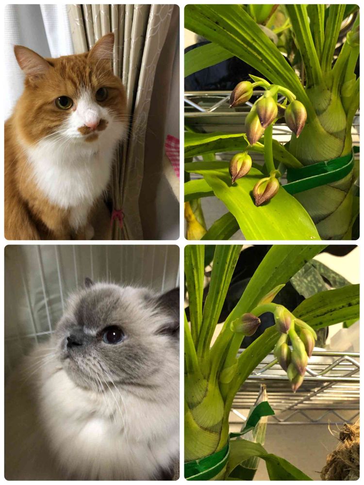 可愛いニャン🐱🐱ちゃんと蘭のお花のコラボ素敵ですね❣️😊💖