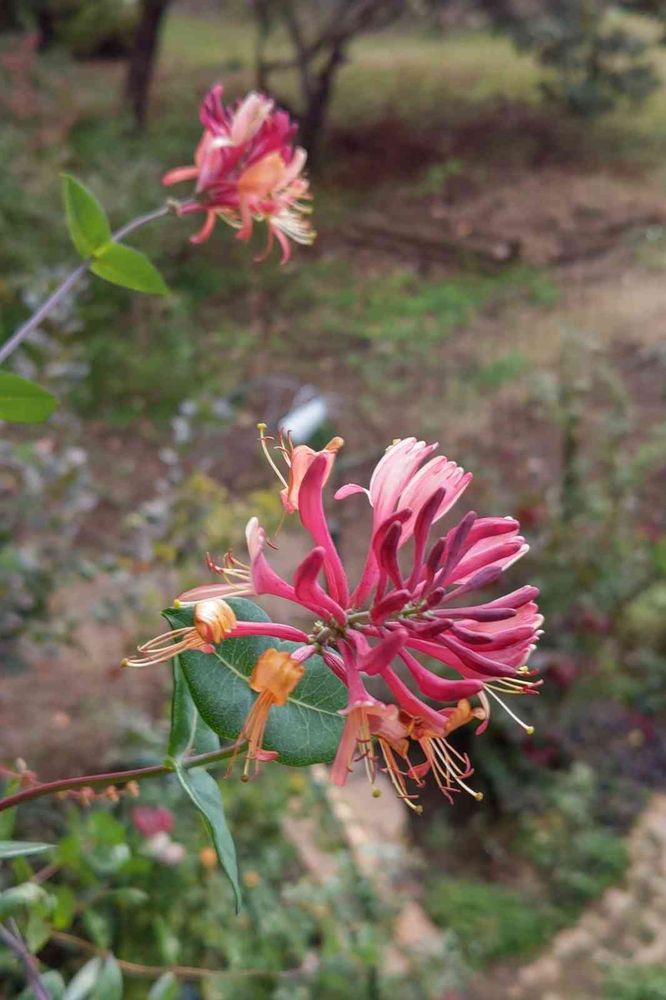 テラスのハニーサックルがまた咲きだしてます。