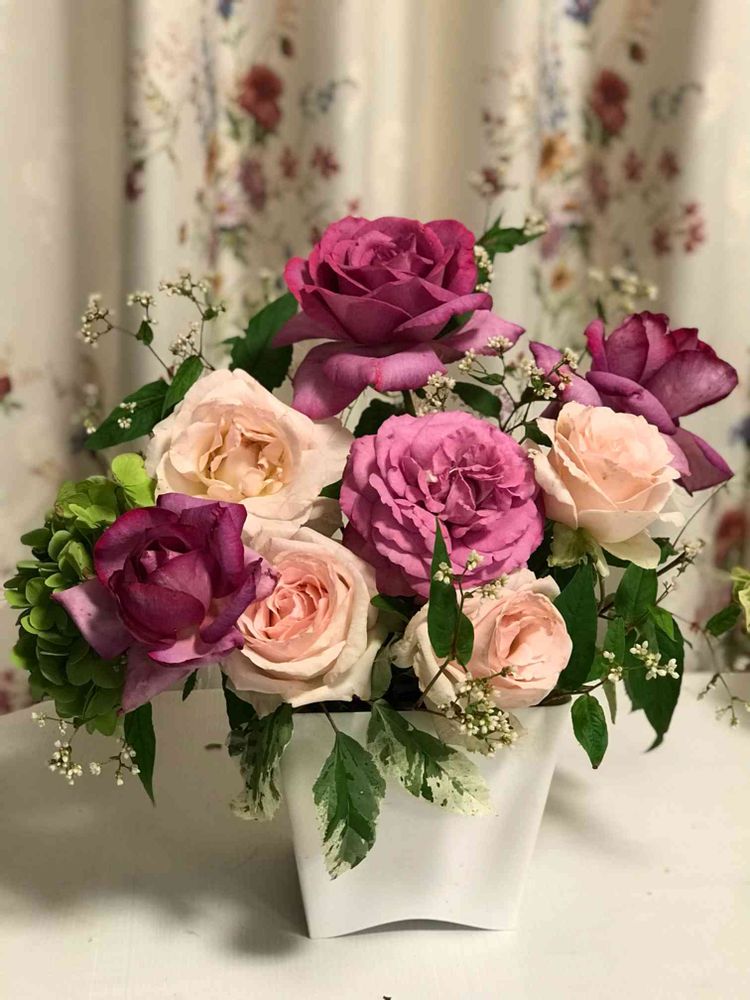 庭から摘んできたバラでアレンジ💖