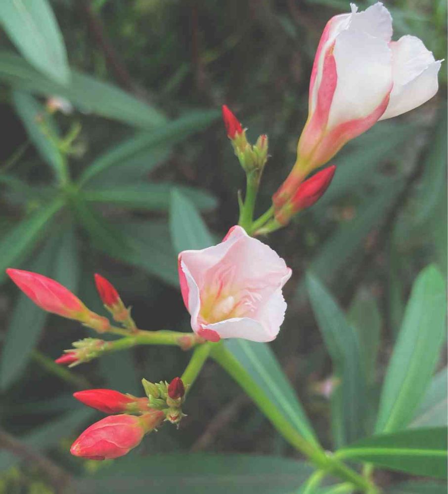 キョウチクトウって、潮風や排気ガスにも強いらしくて、海沿いの道路沿い等によく街路樹にされてるけど……