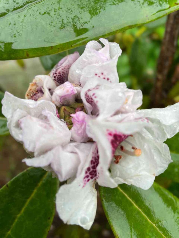 今朝雨の庭で、西洋シャクナゲが咲いているのを発見