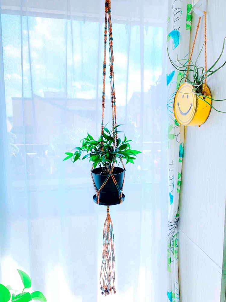 グラデーションの麻ひもでプラントハンガーを編みました❣️