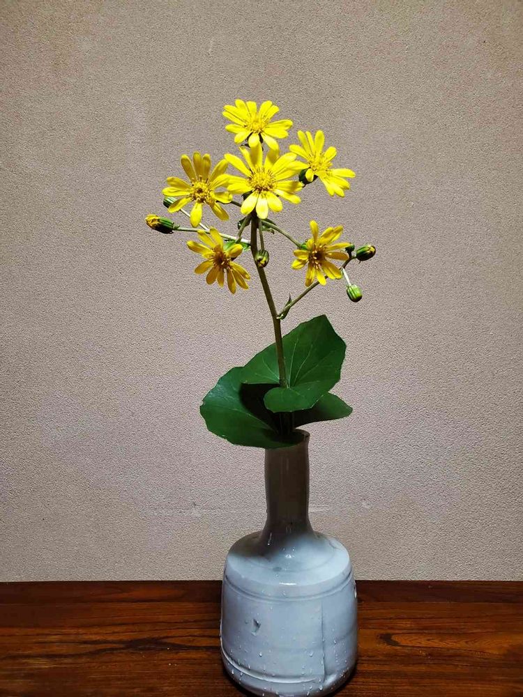 ツワブキのお花も丸い葉もバランス良く素敵に生けられましたネ😄👏