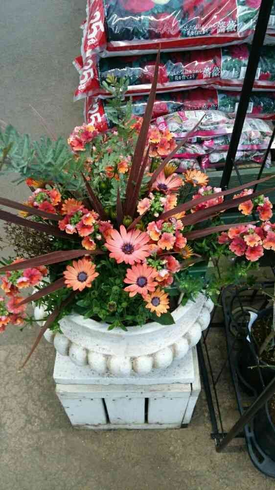 いろんな色が出回っている銀葉アカシアは、寄せ植えのグリーンとして便利です😃オステオスペルマムとディアスキアの色が合っていたので、コルジリネの渋めの色と銀葉アカシアのブルーシルバーでまとめました✨