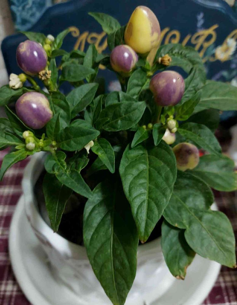 ハロウィン🎃にちなんでお持ち帰りした観賞用トウガラシの実💜が美味しそうなブドウ🍇に見える😅