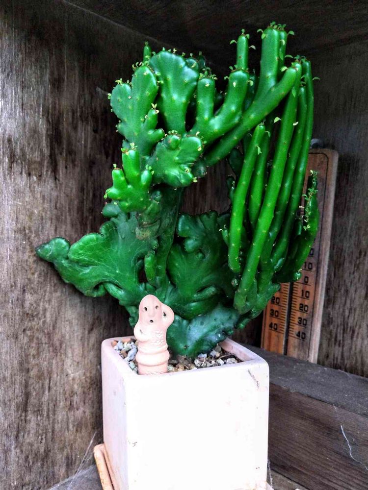 The Farm Unveriversal Chibaにあった白雲閣の綴化や、我家の武倫柱の綴化は……真っ直ぐな柱サボテンっぽい部分と綴化した部分が混ざってるのが面白い……というコンセプトらしくて、普通の芽もよく残ってるんだよね👀