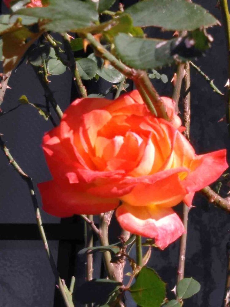 お出かけ先,朝の散歩道,オレンジ色の薔薇の投稿画像