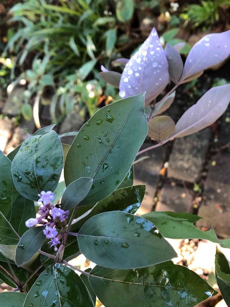 ミツバハマゴウの葉っぱが雨粒をまとい