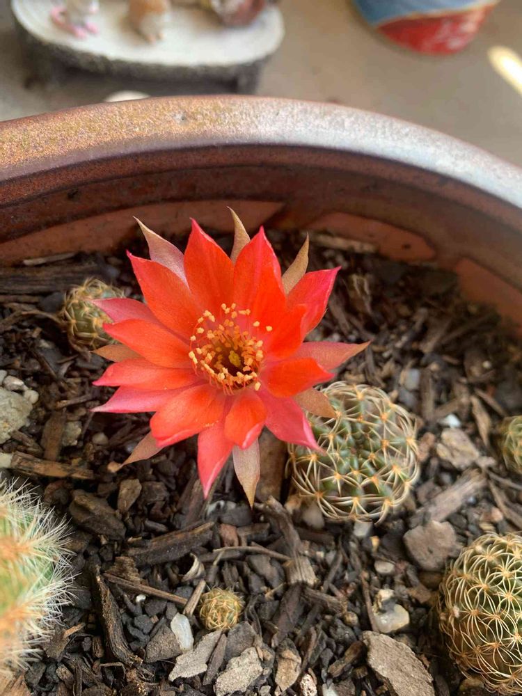 2か月ほど前に、みなさんのサボテンの花を見て、なんて綺麗だろうと憧れを抱き、購入したサボテンの一つに花が咲きました😍