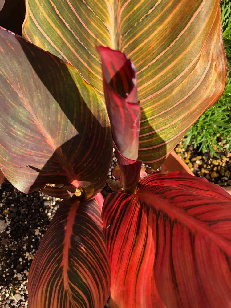 こんなきれいな葉を持つカンナ、はたしてどんな色の花が咲くのですか?