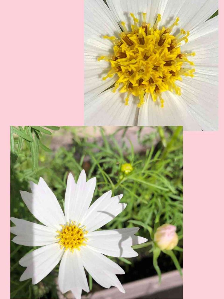昨年の咲いた花からとれた種から咲いたコスモスなんだけど何故か白しか咲かないんだよ😅