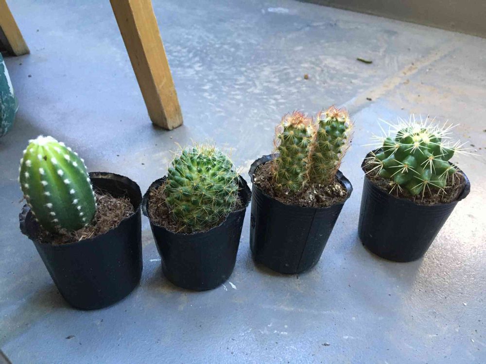 先日DAISOで購入したサボテン4種です♪1番左のと右から2番目のサボテンの名前を教えてください🥺