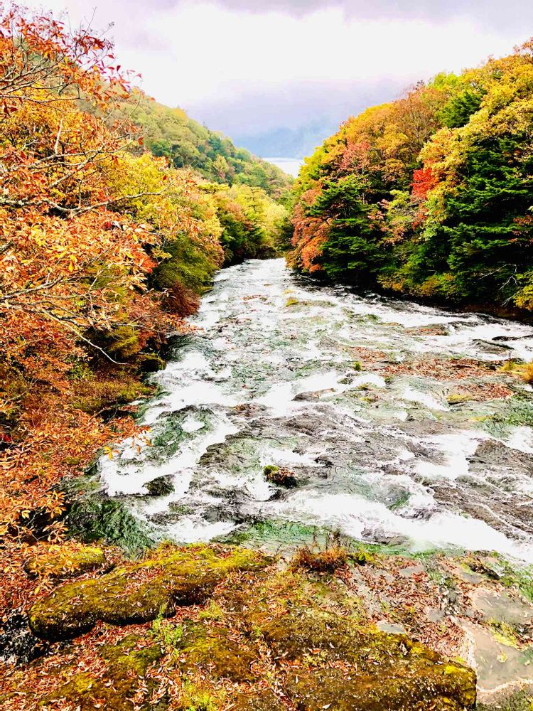 奥日光名瀑三大滝の一つ、龍頭の滝(リュウズのタキ)上部から中禅寺湖を望む‼️