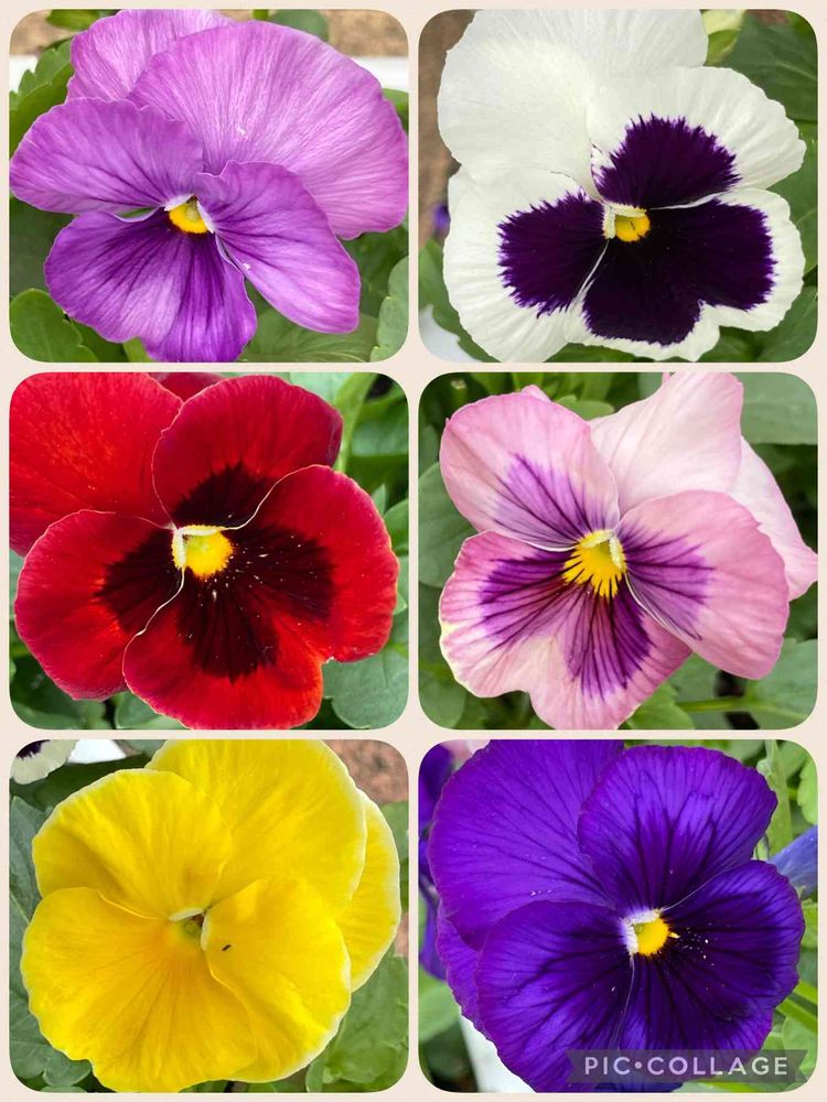 いろんな色のパンジーが鉢植えで咲いていました✨お蔭さまでパンジーコレクション出来ました😊💕