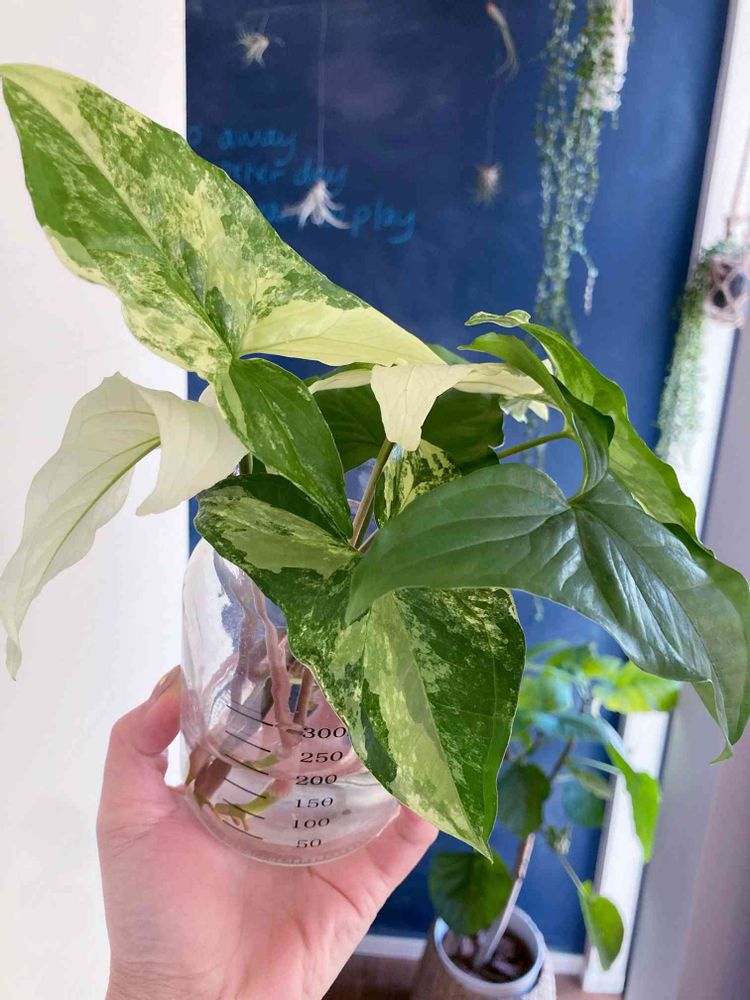 大事にしているシンゴニウムのフレンチマーブルを少し切って水挿しにしてみました。無事根が出るかな...😊🌱