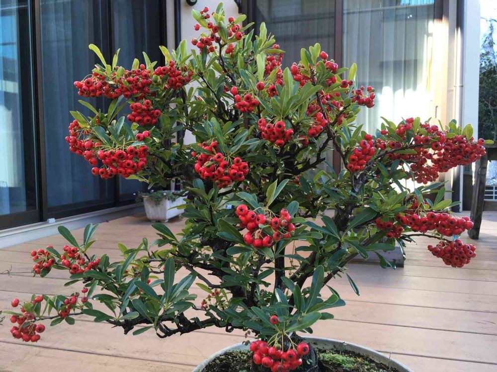 盆栽のピラカンサは、きれいですね❣️