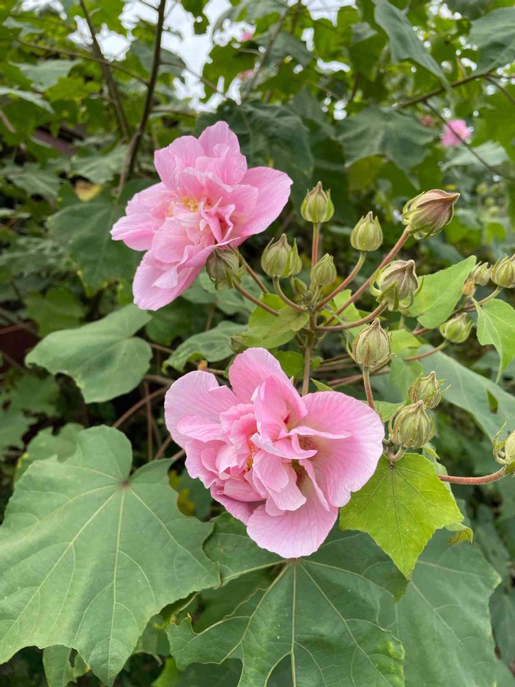 八重咲きの綺麗なピンク色のフヨウの花🌸が目を惹きました😊 たくさん花を付けていて 蕾もまだいっぱいでした🌸
