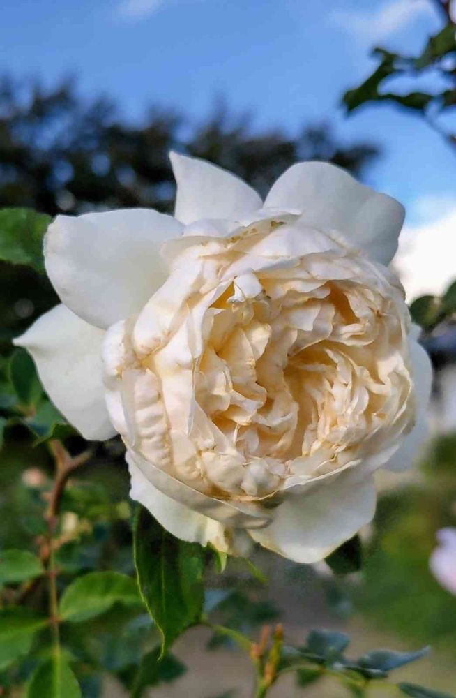 イングリッシュローズ・クロッカスローズです。ソフトアプリコット色で外側はクリームになりなんとも優しい色合い