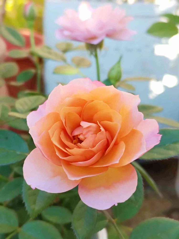 中心のオレンジからピンクのグラデーションが優しい秋色のミニバラカーナ