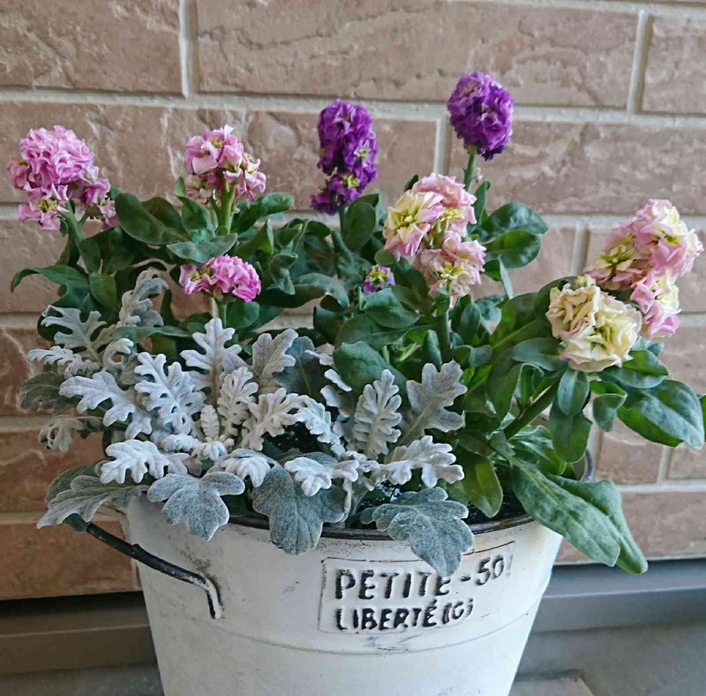 エントランス,八重咲きストック,寄せ植えの投稿画像
