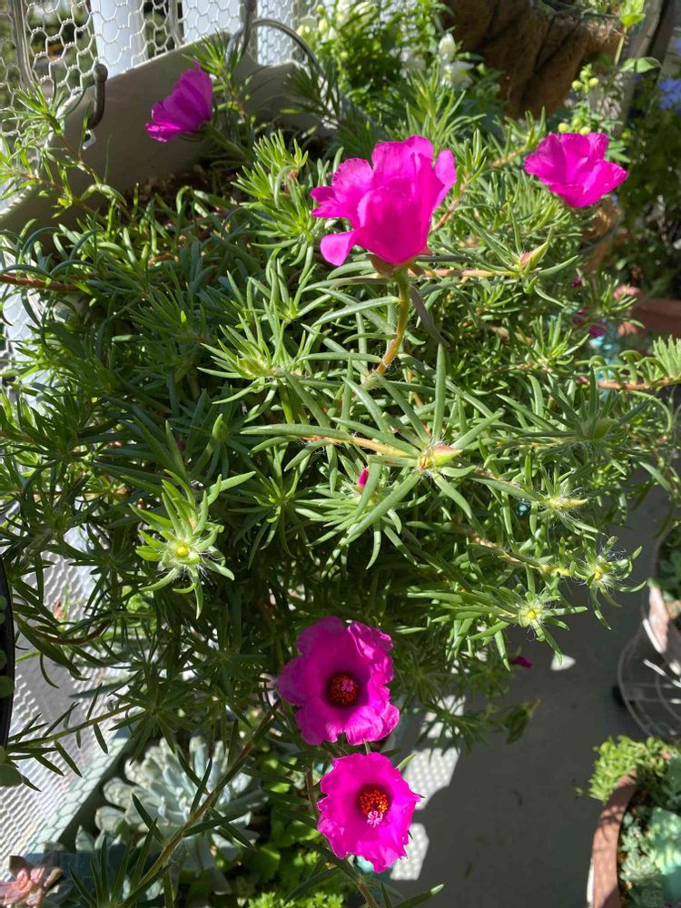 大輪松葉ぼたんが次々に咲いてくれてます。