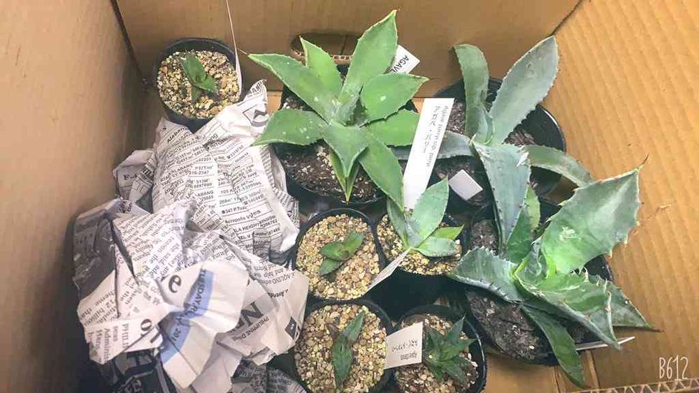 今年は諦めていたアガベがこんなに!!!購入してしまいました!!!ネットだと高くて手が出せないチタノタも!!!!園芸店に売ってました😭😭😭