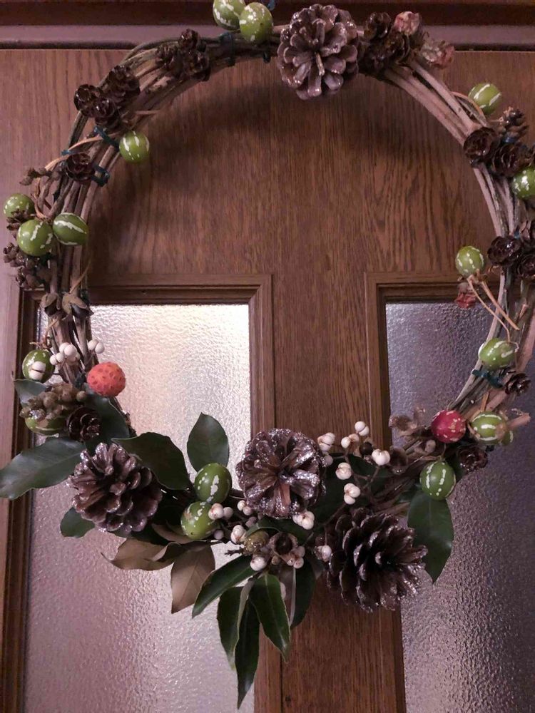 早いですよね。サンパラソルの茎が裏まで伸びてたので🌸リースの土台に、沖縄烏瓜、松ぼっくり🌿などシンプルですが早々飾りました。やっぱり寒い冬今年も到来です。🤧🏙