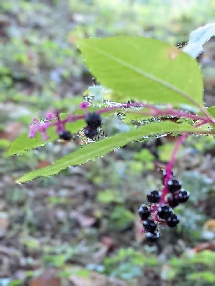 ヨウシュヤマゴボウは朝露に濡れて…。