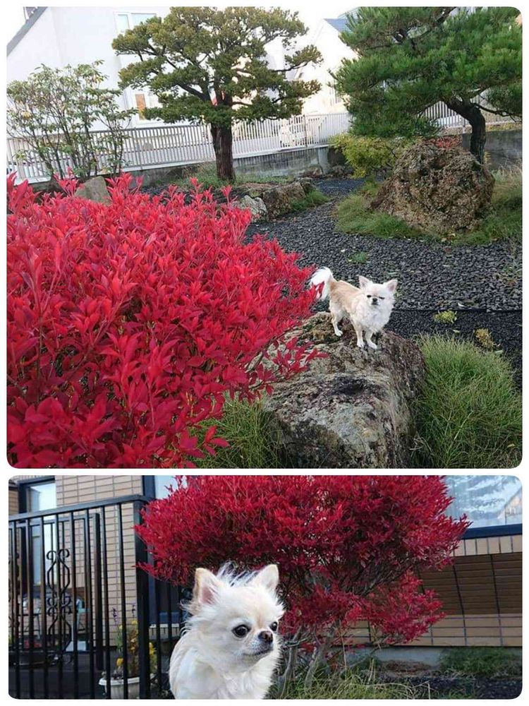 ショコラ🐶も元気に朝からお庭散策です🎶💨🍁