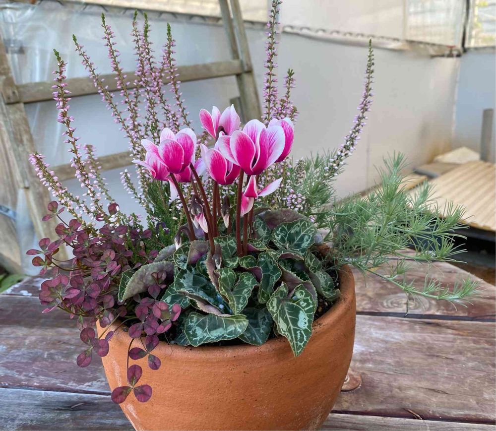 玄関用にガーデンシクラメンの寄せ植えを作りました🌸