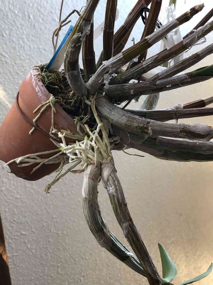この脇のが途中で何かの加減で取れたら、それは仕方ないので株分けしますが、この通り空中にある根っこだから、鉢の中は嫌がるかも知れませんね😆