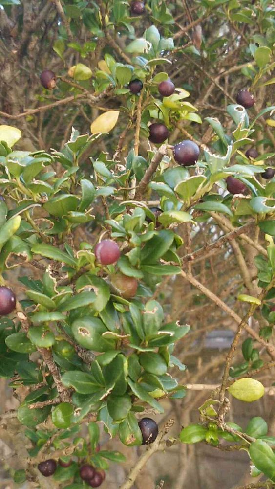多分イヌマキかなんかの実、刈り込んだ為なのか今年はまばらな感じ