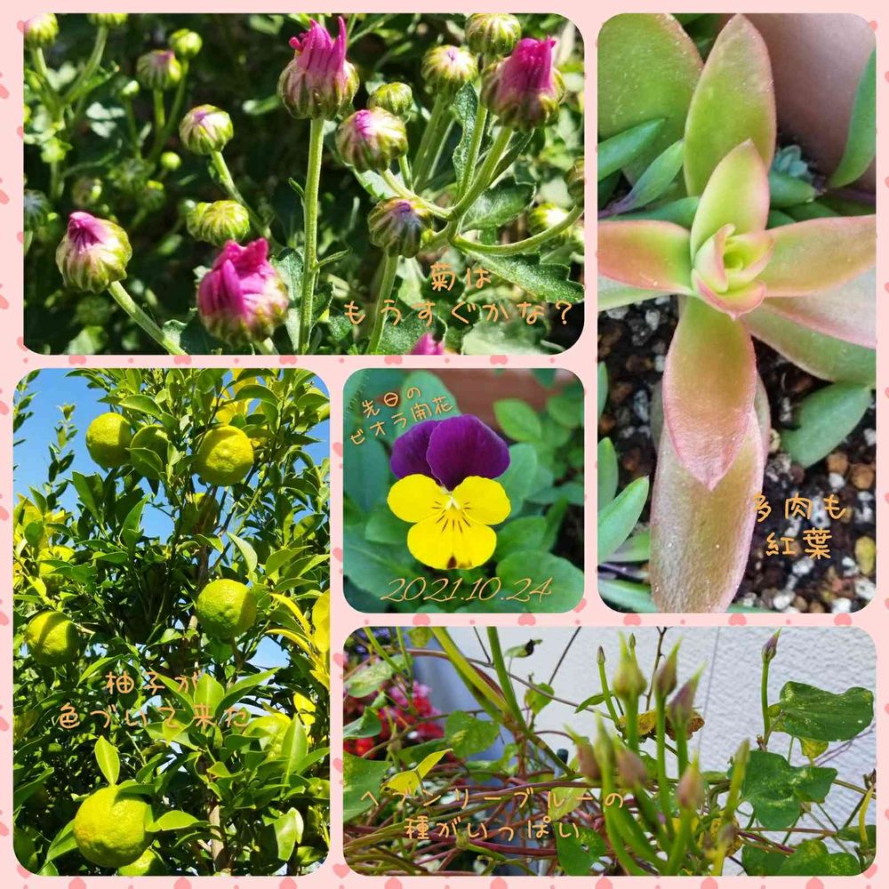 畑ガーデンも菊の蕾がほころんできたり、柚子が黄みを帯びてきたり、多肉も紅葉したり秋が深まりつつあります。