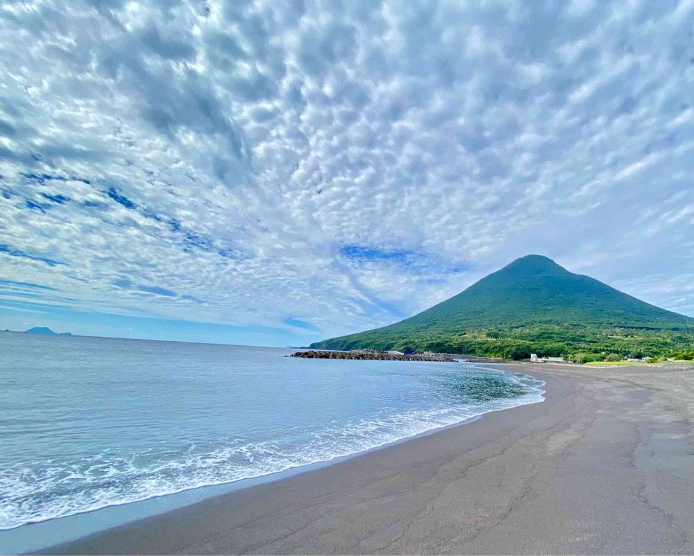 開聞岳は,ほとんど浸食を受けていない美しい円錐形の火山で、薩摩富士と呼ばれています。海に突き出た山裾の2/3が海岸線を形成していて、海食崖が発達していて、ここでしか見られ無い珍しい景色を見せてくれます😍⛰