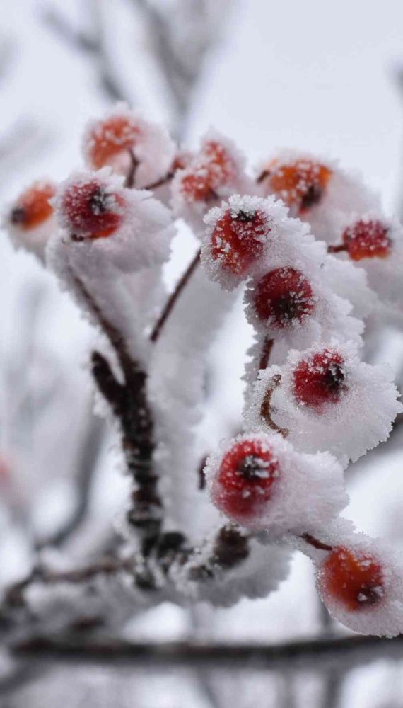 深い赤に、白い雪…自然が生み出す、贈り物ですね…。