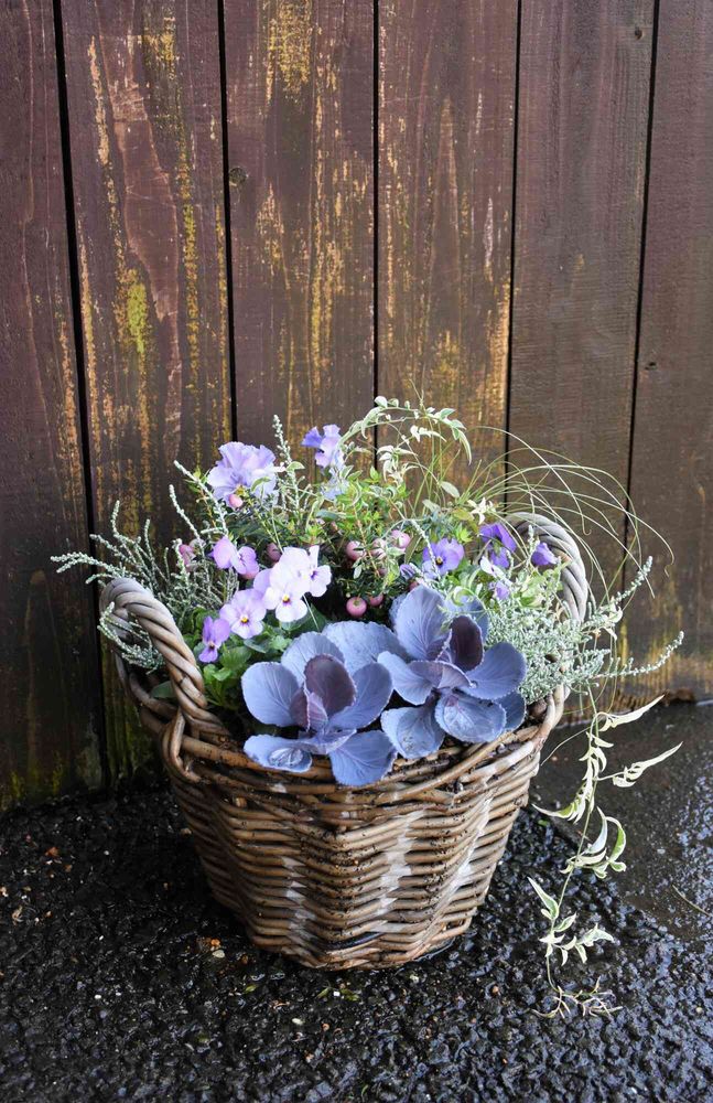 ハボタン、パンジー、ビオラ、ペルネティア、ハゴロモジャスミン、カレックス、オレアリア