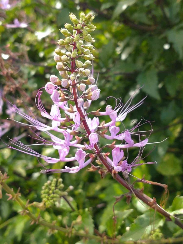 ピンと上を向いた長い雄しべと雌しべが猫の髭を連想させることから名前がついたようです