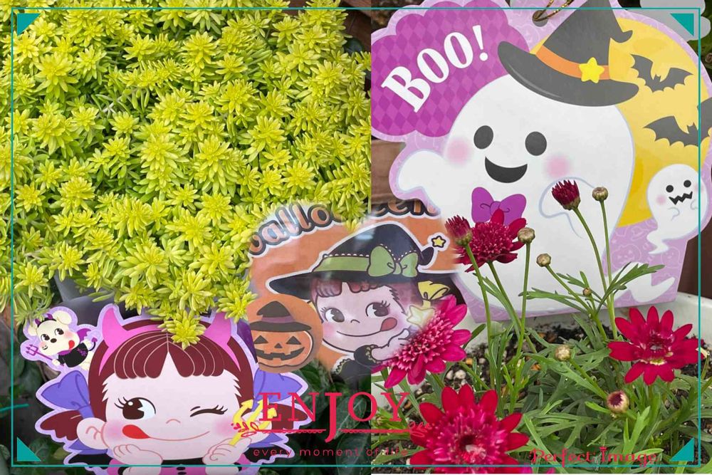 セダムモリモリの中に、ペコちゃんハロウィン🎃🎃🎃を楽しんでますね😍