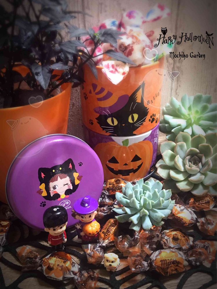 ペコちゃんや飴ちゃんでかわいいハロウィン🎃👻🎃の中にもブラックパールの黒い葉がダークな雰囲気を醸し出していますね〜🦇☠️🦇