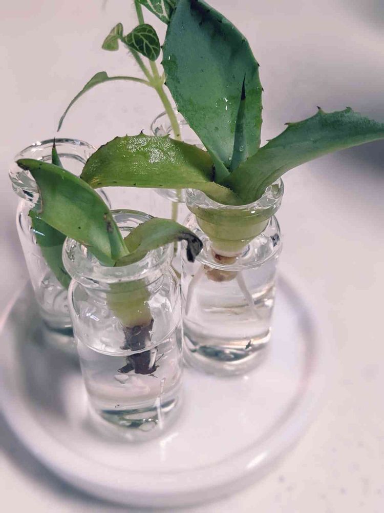 ポキっと折れて駄目だと思ってたミニっ子カキ仔ちゃん達、ダメ元でお水に浸けてたら発根してる!!!
