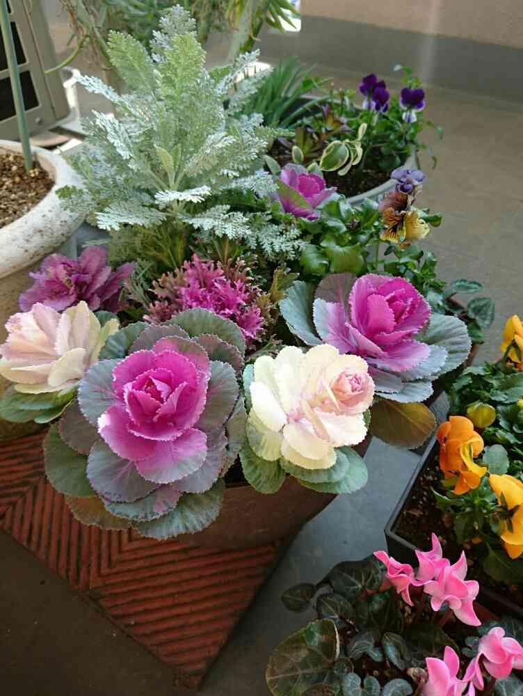 viola036さんのバルコニー/ベランダ,葉牡丹,シルバーレースの投稿画像