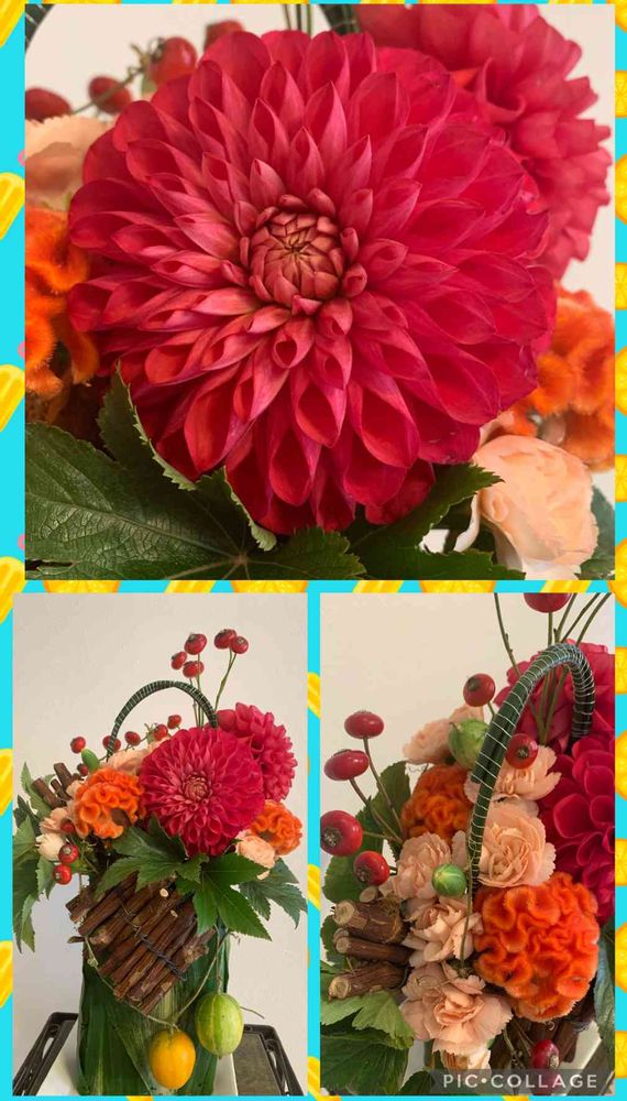 秋らしくてダリアがとっても可愛らしいです❣️素晴らしいセンス〜💓